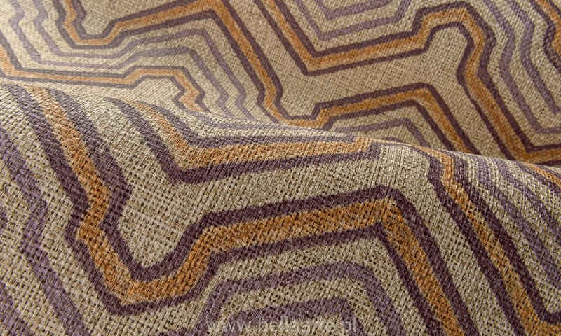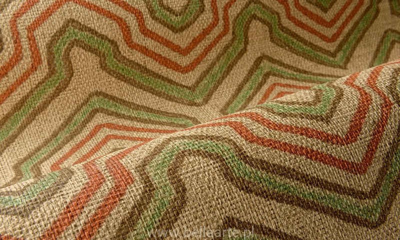 Arte wzór Ondas etniczny wzór w folklorystycznych barwach, geometryczny wzór w zygzaki. Cała niesamowita kolekcja Gitane obfituje w niesamowite wzory pięknych włoskich pól kwiatowych i podróży z Tybetu do Zimbabwe a dodatkowo mieszanka materiałów po imitacje jedwabiu i innych materiałów.