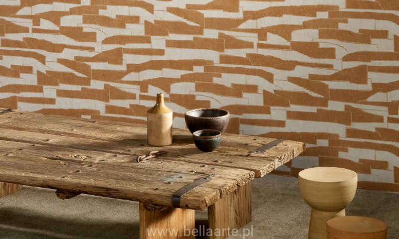 Arte wzór Gabarit tworzy skalibrowany wzór a poziome linie patchworku optycznie powiększają wnętrze. Kolekcja Essentials Costura to piękne, delikatne struktury imitujące różne materiały.