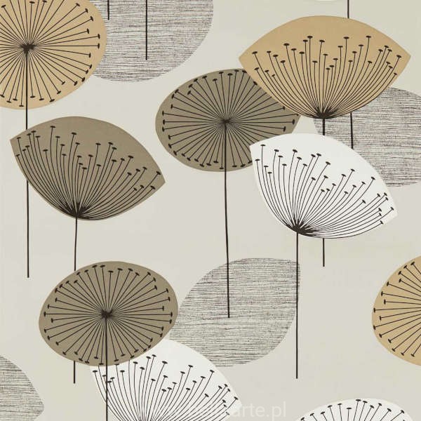 Współczesna projektantka Fiona Howard stworzyła ten pełen życia i nieco zwariowany wzór retro Dandelion Clocks inspirowany latami 50 - tymi dla studia Sanderson w 2009 roku. Projekt Dandelion Clocks przedstawia stylizowane główki mniszka lekarskiego, z których nasiona promieniście rozchodzą się od centralnego punktu, tworząc dynamiczny i przyciągający uwagę motyw. Wzór Dandelion Clocks łączy w sobie nostalgiczny urok przeszłości z nowoczesnym podejściem do designu, dodając wnętrzom wyjątkowego charakteru.