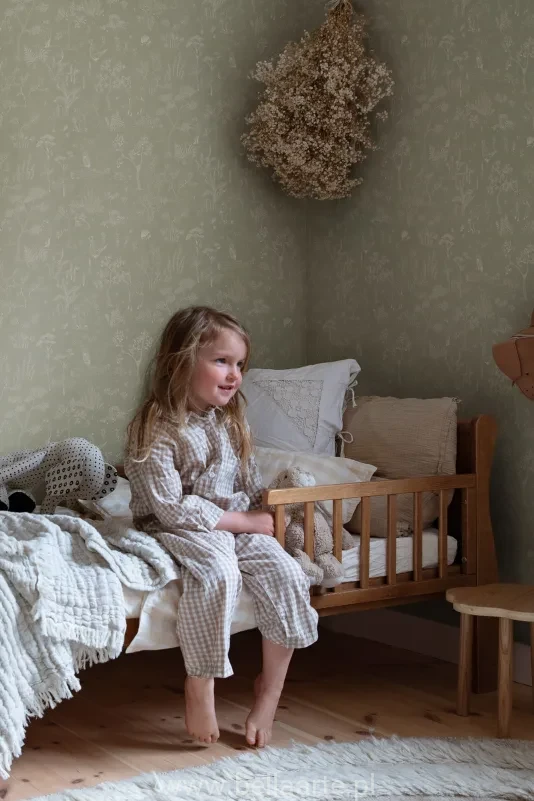 Delikatne detale i ilustracyjny charakter wzoru pobudzają kreatywność, jednocześnie nie przytłaczając wnętrza. Motyw inspirowany naturą wprowadza harmonię i ciepło, idealne do codziennego odpoczynku i zabawy.