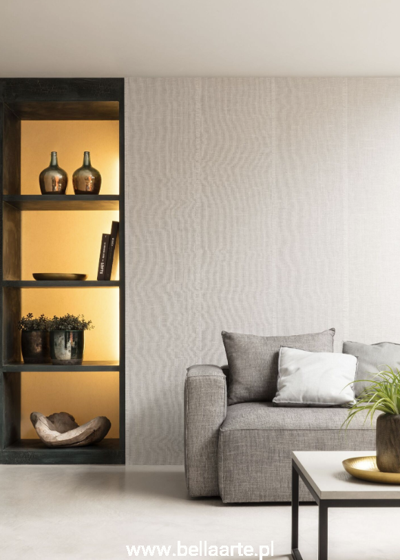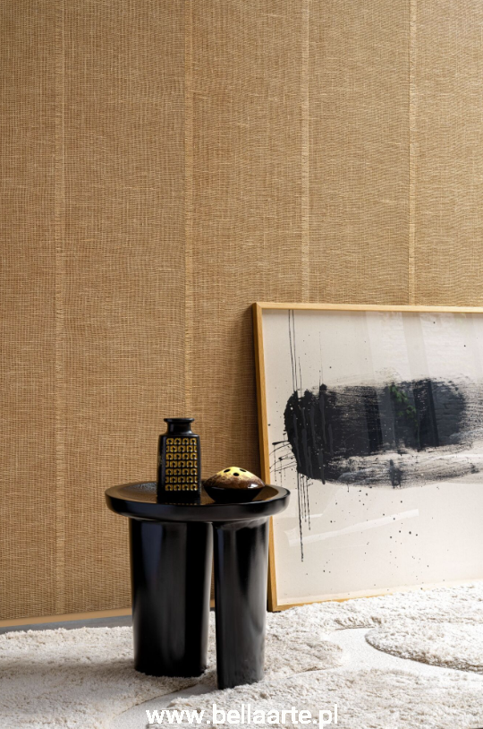 Dzięki tej technice powierzchnia tapety nie jest całkowicie gładka – zachowuje naturalną teksturę, która pięknie pracuje ze światłem i wprowadza do wnętrza ciepło oraz przytulność. Widoczny splot juty podkreśla organiczny charakter materiału, tworząc autentyczny efekt inspirowany naturą.