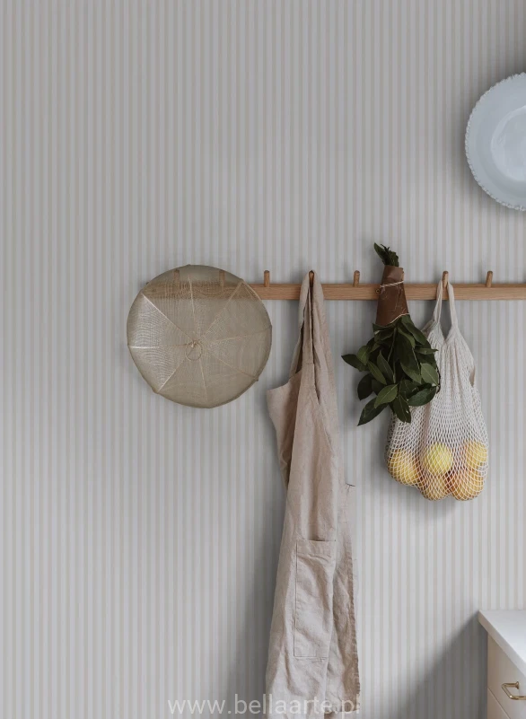 Tapeta w paski Sandberg Estelle 826-09 świetnie sprawdzi się jako baza całego pomieszczenia – może stanowić tło dla mebli i dodatków lub grać główną rolę w aranżacji. Jej subtelny rytm pozwala również na łączenie z innymi wzorami z kolekcji Familjen, tworząc spójną, a jednocześnie osobistą i przytulną przestrzeń.
