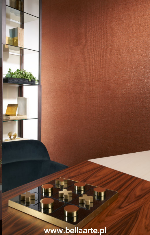 Model Eclipse 40355A posiada charakterystyczną, tkaną powierzchnię z dodatkiem miki, która subtelnie odbija światło. W ciemniejszym wydaniu efekt ten tworzy elegancki, lekko tajemniczy klimat i podkreśla strukturę ściany.