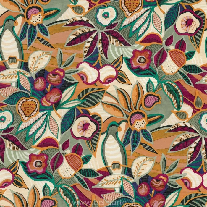 Egzotyczna tapeta TEHUANA to artystyczna interpretacja meksykańskiej kultury, inspirowana tradycyjnym strojem „tehuana”, ozdabianym kwiatami podczas uroczystości. Bogato haftowany, stanowi prawdziwe dzieło sztuki, podobnie jak ten wzór, który ukazuje bujną florę i faunę Meksyku. Obfitość kolorów, nakładające się liście, kwiaty i ptaki tworzą wrażenie radości i świętowania życia.