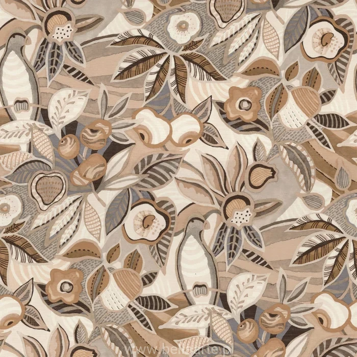 Egzotyczna tapeta TEHUANA to artystyczna interpretacja meksykańskiej kultury, inspirowana tradycyjnym strojem „tehuana”, ozdabianym kwiatami podczas uroczystości. Bogato haftowany, stanowi prawdziwe dzieło sztuki, podobnie jak ten wzór, który ukazuje bujną florę i faunę Meksyku. Obfitość kolorów, nakładające się liście, kwiaty i ptaki tworzą wrażenie radości i świętowania życia.