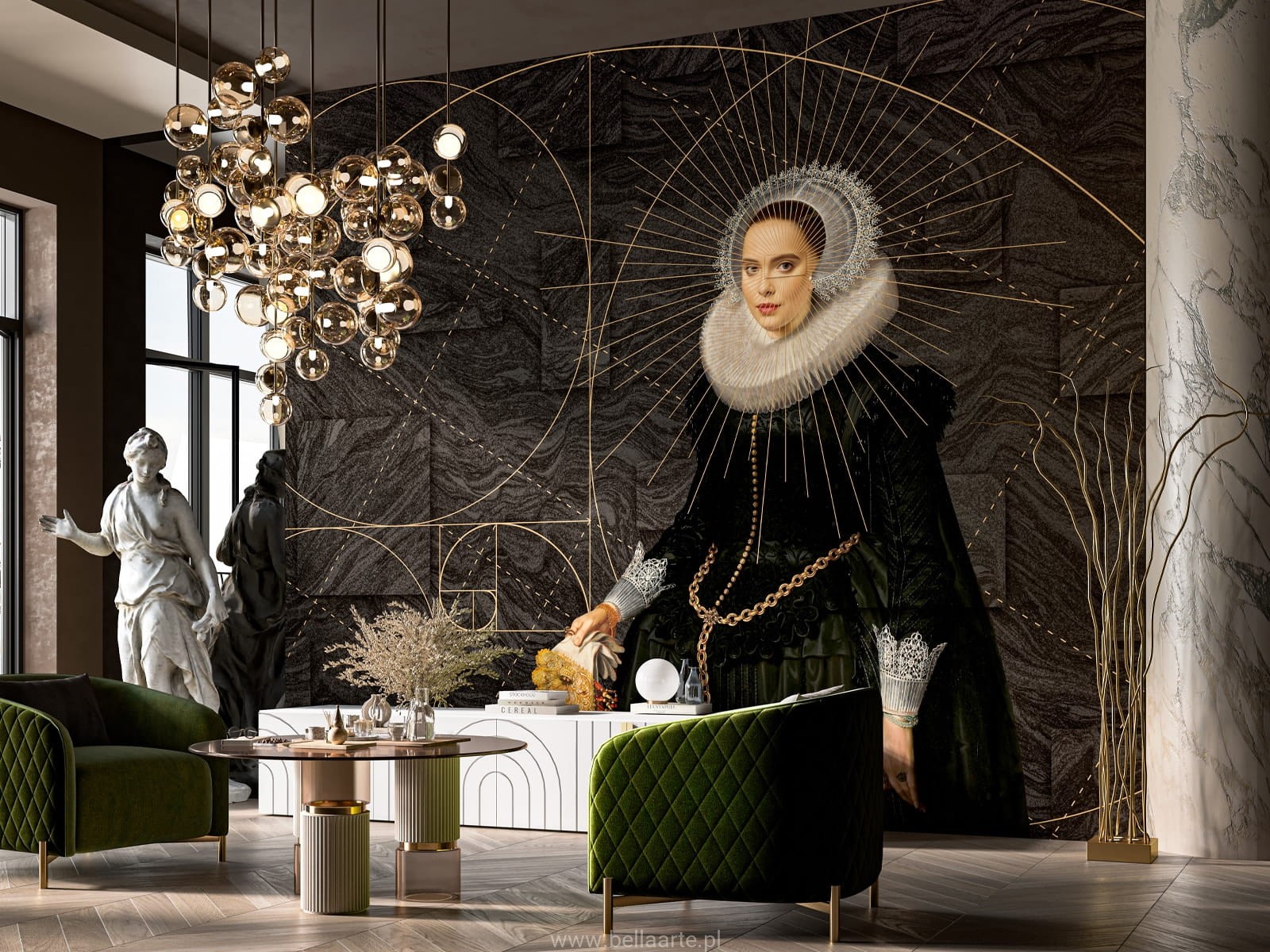 Tapeta Bianco od Wallcraft to eklektyczne połączenie geometrii i sztuki. Wzór łączy abstrakcyjne kształty z postacią kobiety – królowej, tworząc unikalną kompozycję pełną kontrastów i wyrazistości. Z pozoru niepasujące elementy harmonijnie się przenikają, nadając wnętrzu charakteru i artystycznego wyrazu. Tapeta idealnie sprawdzi się w nowoczesnych i odważnych aranżacjach, wprowadzając niepowtarzalny klimat do salonu, sypialni lub biura.