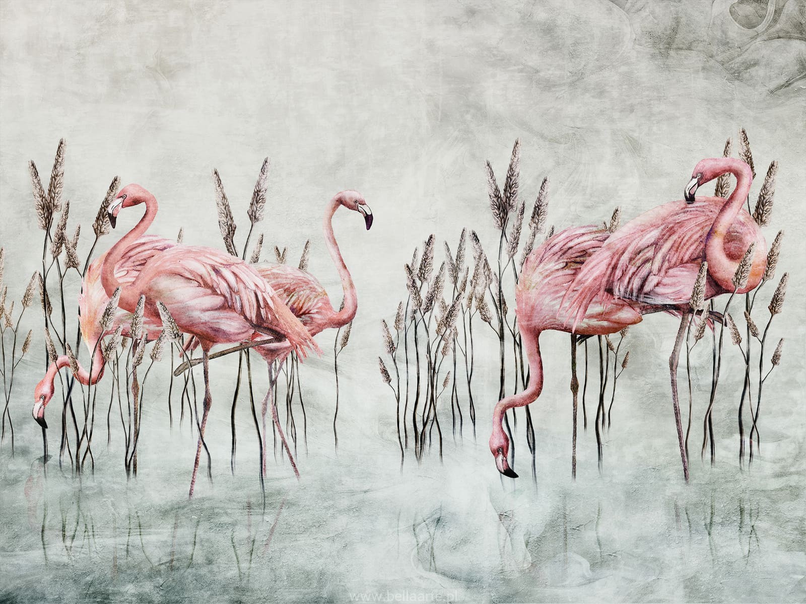 Tapeta Fenicottero od Wallcraft to elegancka kompozycja, która przenosi nas w egzotyczny świat natury. Przedstawiająca różowe flamingi brodzące w dzikim stawie, otoczone trzciną, tapeta wnosi do wnętrza subtelną harmonię i egzotyczny urok. Jej elegancki wzór doskonale dopełnia nowoczesne aranżacje, nadając pomieszczeniu unikalny charakter i styl.