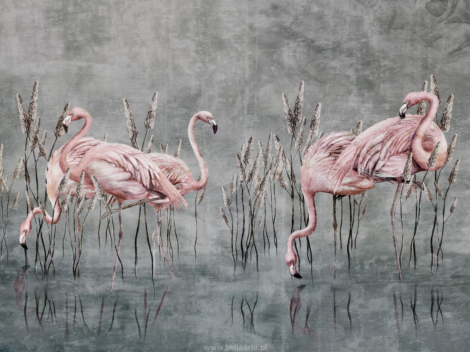 Tapeta Fenicottero od Wallcraft to elegancka kompozycja, która przenosi nas w egzotyczny świat natury. Przedstawiająca różowe flamingi brodzące w dzikim stawie, otoczone trzciną, tapeta wnosi do wnętrza subtelną harmonię i egzotyczny urok. Jej elegancki wzór doskonale dopełnia nowoczesne aranżacje, nadając pomieszczeniu unikalny charakter i styl.