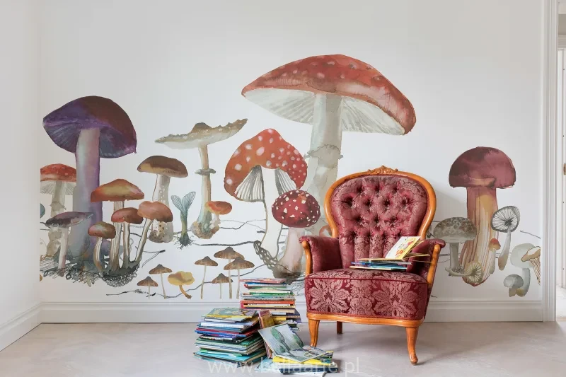 Te gigantyczne grzyby sprawią, że będziesz się czuł jakbyś był w dziwnej krainie, niezależnie od tego, czy jesteś małym lub dużym dzieckiem. Boczny powtarzalny wzór gra z perspektywą i ma potencjał do zmniejszenia całego pomieszczenia. Fototapeta sprzedawana na wymiar ściany. Cena dotyczy metra kwadratowego fototapety.