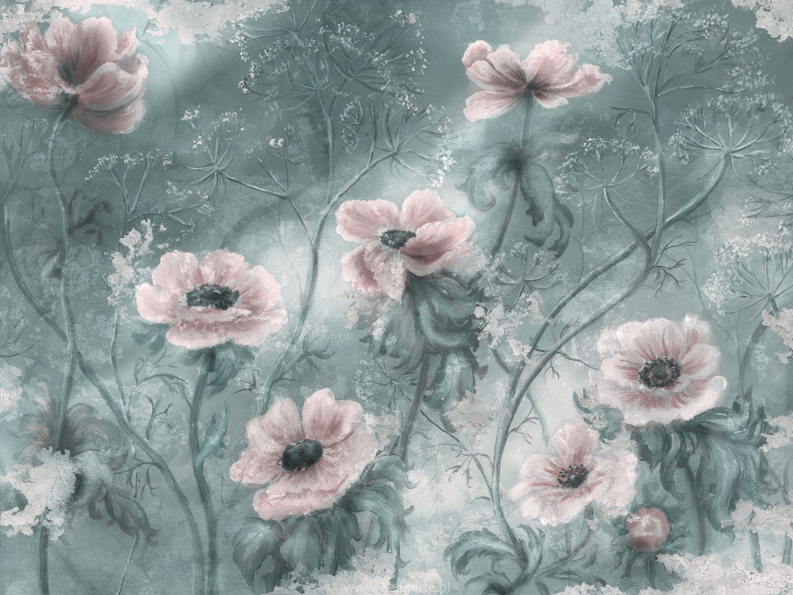 Tapeta Flori to romantyczna kompozycja anemonów w odcieniach fioletu, które w połączeniu z zielonym tłem tworzą harmonijną i stylową dekorację ścian. Delikatny, a jednocześnie wyrazisty wzór sprawdzi się zarówno jako główny element aranżacji, jak i subtelny akcent wnętrza. Doskonały wybór do salonu, sypialni czy biura, gdzie wniesie odrobinę natury i elegancji.