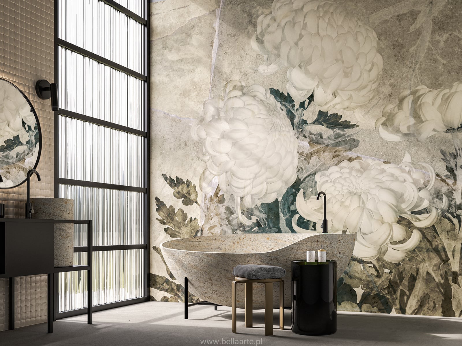 Tapeta Floss to harmonijna kompozycja dużych kwiatów, która mimo swojej wyrazistości emanuje delikatnością i lekkością. Stonowana kolorystyka sprawia, że wzór doskonale komponuje się z drewnianymi dodatkami i naturalnymi tkaninami, tworząc ciepłe i przytulne wnętrze. To idealny wybór dla osób ceniących eleganckie, ale nienachalne dekoracje ścian.