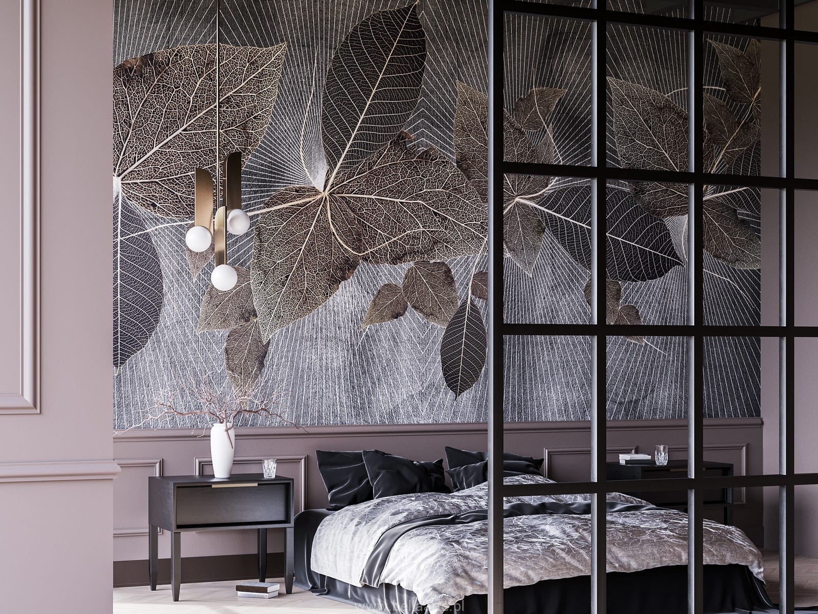 Tapeta Blara od Wallcraft to połączenie natury z nowoczesnym designem. Oryginalny motyw liści na ciemnym tle, wkomponowany w geometryczny wzór, tworzy elegancki i subtelny efekt. Tapeta ta idealnie sprawdzi się w przestrzeniach, które łączą miłość do natury z nowoczesnym stylem. Doskonała do salonu, sypialni czy biura, tapeta Blara doda wnętrzom wyjątkowego charakteru, wprowadzając harmonię i elegancję.