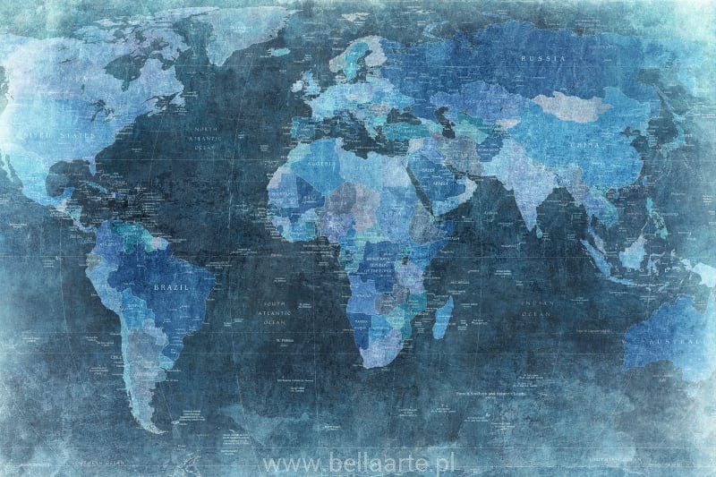 Fototapeta z motywem mapy świata. Fototapeta sprzedawana na wymiar ściany. Cena dotyczy metra kwadratowego fototapety.
