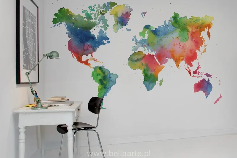 Fototapeta z motywem mapy świata. Fototapeta sprzedawana na wymiar ściany. Cena dotyczy metra kwadratowego fototapety.