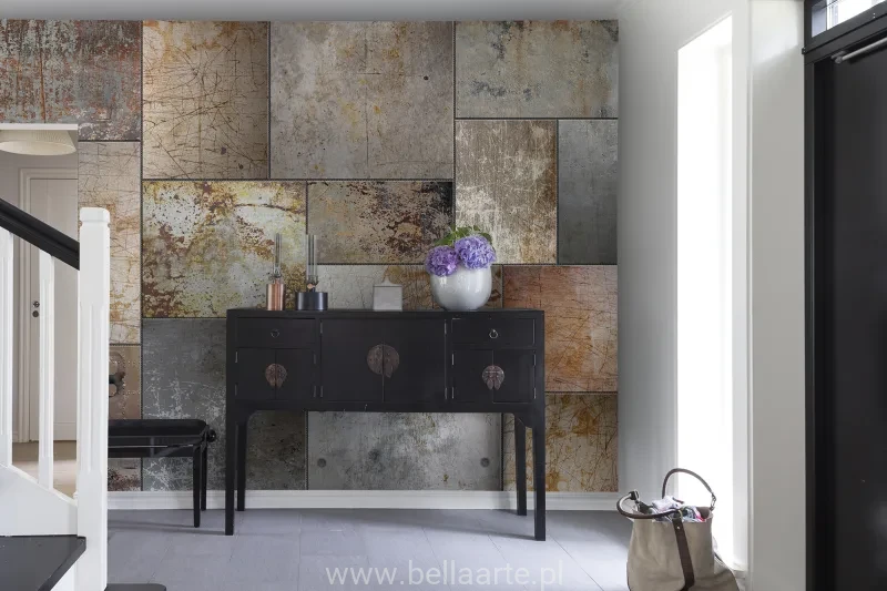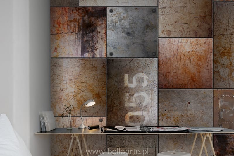 Ten projekt fototapety obrazuje porysowane, platerowane metale i stalowe płyty tworząc ciekawe zdjęcie przemysłowe do domu.Fototapeta sprzedawana na wymiar ściany. Cena dotyczy metra kwadratowego fototapety.