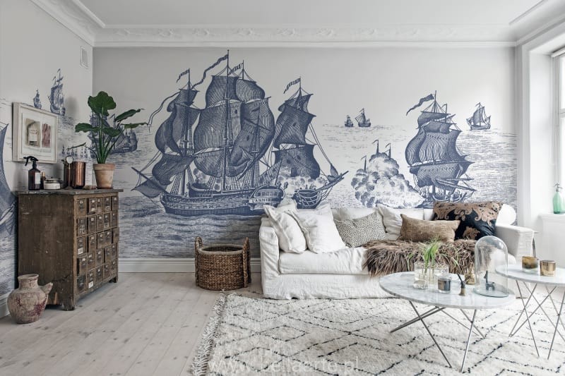 Elegancka, a jednocześnie odważna fototapeta przedstawia sceny okrętów w bitwie. Fototapeta sprzedawana na wymiar ściany. Cena dotyczy metra kwadratowego fototapety.