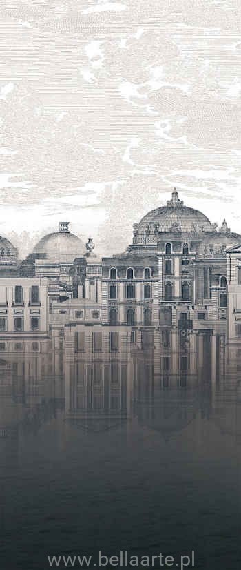 Mural Casteleview Rose i Mist przedstawia pałac. Dostępne są dwie odsłony tej tapety. W pierwszej na pierwszym planie widać kwiaty, druga natomiast to lustrzane odbicie pałacu w wodzie. Fototapeta ta dostępna jest w dwóch wersjach kolorystycznych. Mural składa się z dwóch części, które można ze sobą połączyć lub ułożyć na ścianie pojedynczo.
