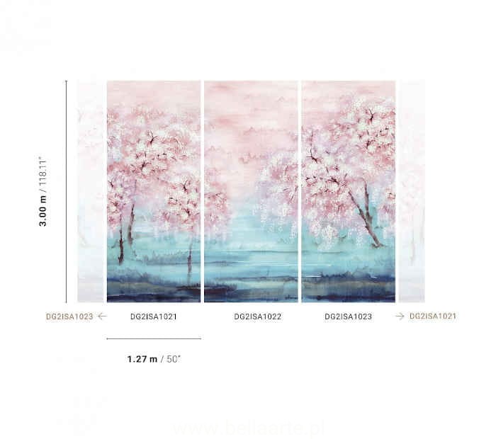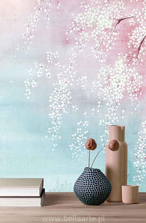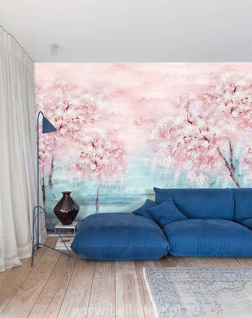 Mural Misaki Water to niebanalna dekoracja wnętrza, przedstawiająca drzewa wiśni w trzech odsłonach pór roku. Mural składa się z trzech części, które można ze sobą połączyć lub ułożyć na ścianie pojedynczo.
