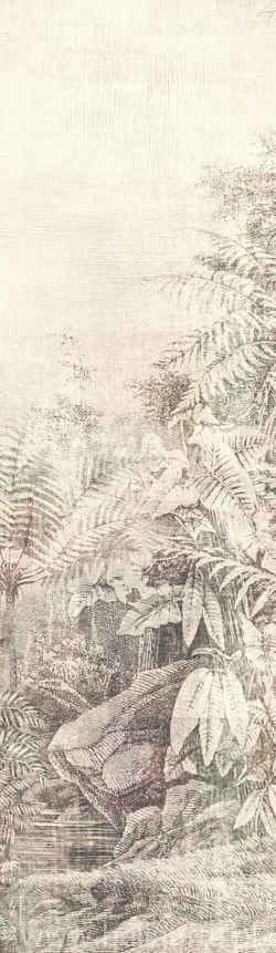 Mural Wander Linien i Wander Leaf to fototapety ukazujące dżunglę i jej egzotyczną, bujną roślinność. Murale dostępne są w dwóch wersjach kolorystycznych, w delikatnych jakby zamglonych barwach.Fototapeta wyprodukowana jest z domieszką naturalnych włókien sizalu, dlatego jej struktura jest bardzo dekoracyjna. Mural składa się z czterech części, które można ze sobą połączyć lub ułożyć na ścianie pojedynczo.