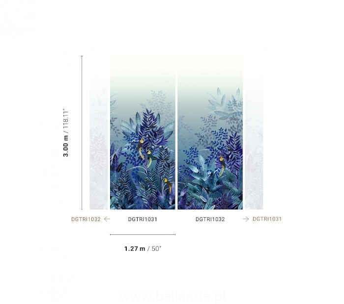 Murale Tribute nawiązują do przepięknej dżungli, tropikalnych liści i egzotycznych ptaków. Fototapeta dostępna jest w trzech wersjach kolorystycznych Jungle, Lunar i Sierra. Mural składa się z dwóch części, które można ze sobą połączyć lub ułożyć na ścianie pojedynczo.