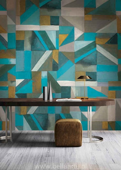 Mural Lyric Pastel, Blue i Green to geometryczne fototapety, które doskonale odnajdą się w nowoczesnym wnętrzu. Panele dostępne są w trzech wersjach kolorystycznych. Mural składa się z dwóch części, które można ze sobą połączyć lub ułożyć na ścianie pojedynczo.