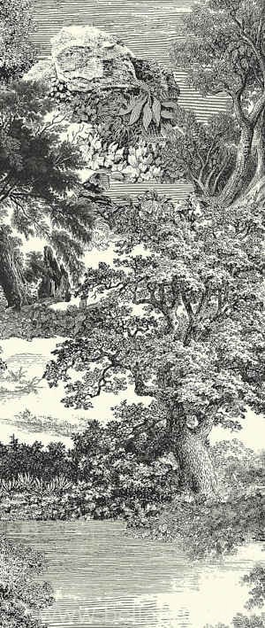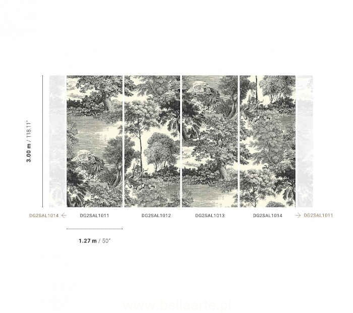 Mural Salcey Forest to fototapeta przedstawiająca gesty, bajkowy las, w który dominuje bujna, różnorodna roślinność. Mural składa się z czterech części, które można ze sobą połączyć lub ułożyć na ścianie pojedynczo.