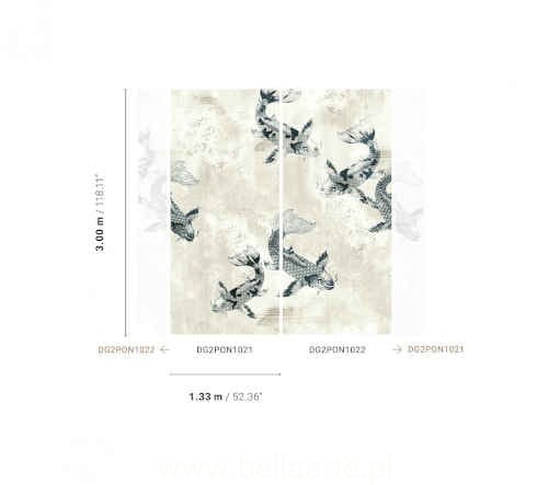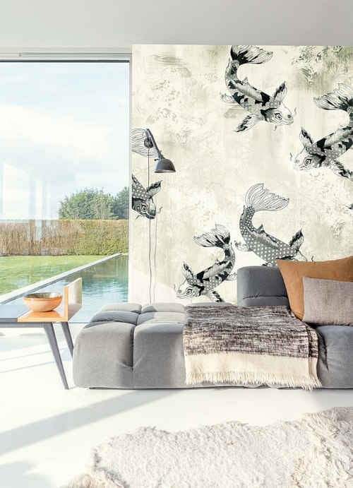 Mural Pond Marigold i Ink to fototapeta w ryby, dostępna w dwóch wersjach kolorystycznych. Mural składa się z dwóch części, które można ze sobą połączyć lub ułożyć na ścianie pojedynczo.