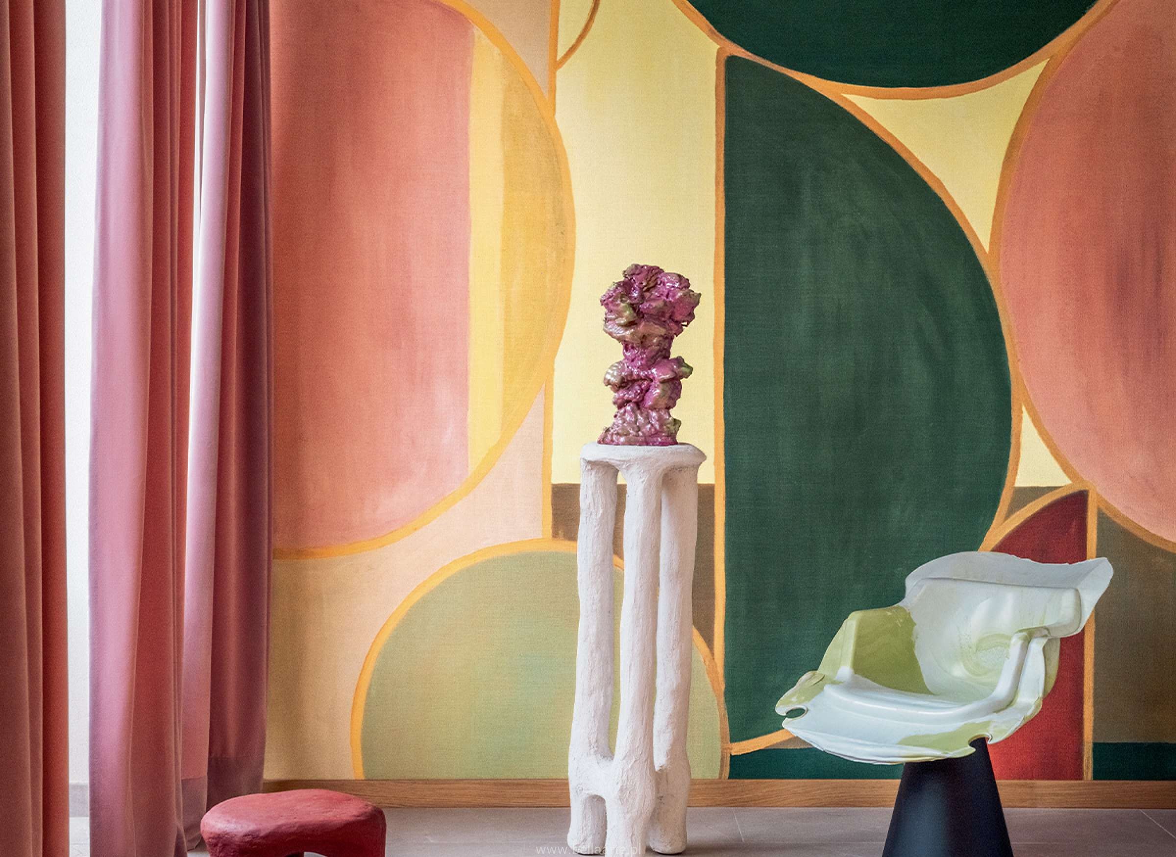 Charakterystyczne dla twórczości Véronique powtarzalne, faliste linie symbolizują cierpliwość i dbałość o detal, widoczną również w subtelnych, często metalicznie połyskujących odcieniach. W dużych, panoramicznych formatach tapety stają się niemal malarskimi dziełami sztuki. Ręcznie malowane detale ożywiają wnętrza intensywnymi kolorami i artystycznym wyrazem. To kolekcja dla tych, którzy cenią sobie design na pograniczu sztuki i dekoracji.