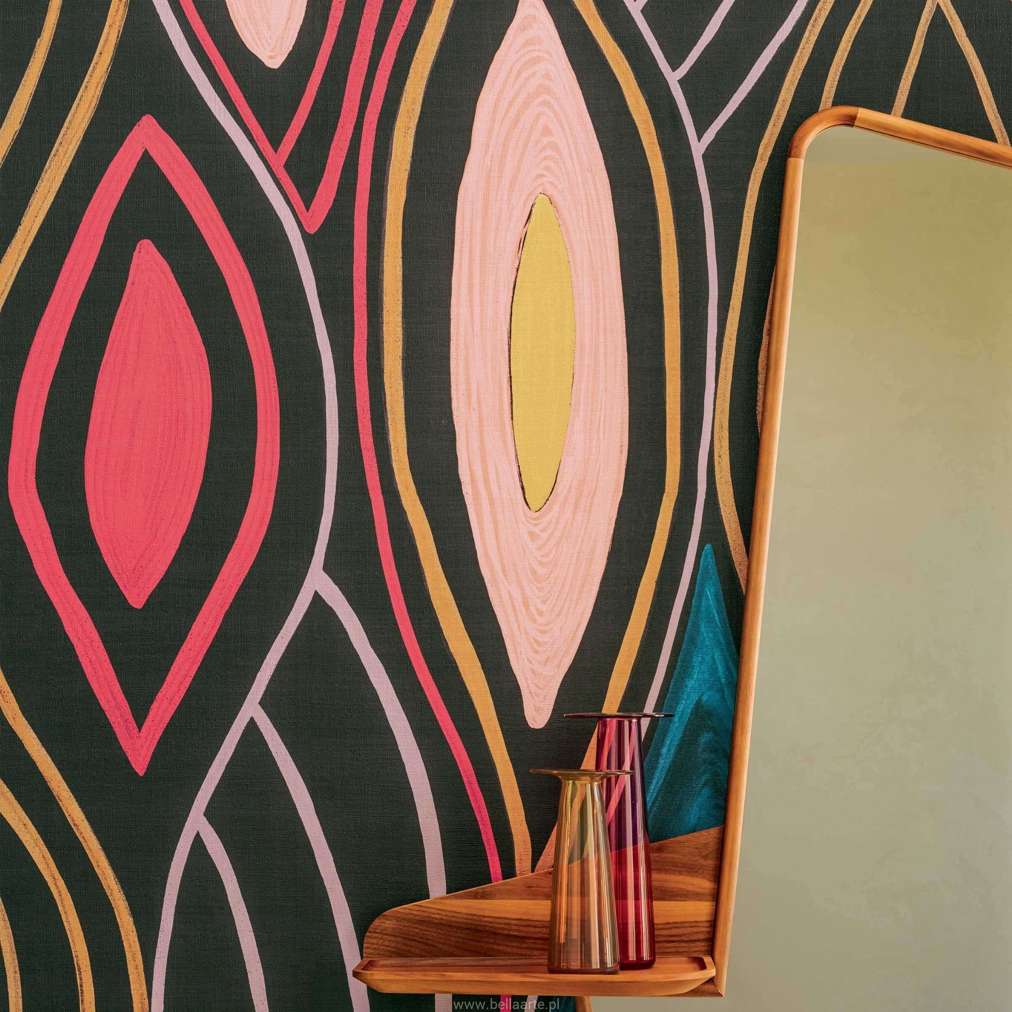 Mural w figury geometryczne doskonale odnajduje się w nowoczesnych i artystycznych przestrzeniach, nadając im wyrafinowany rytm i strukturę. Zastosowanie miękkich przejść kolorystycznych i ornamentyki w duchu współczesnego rzemiosła sprawia, że ten mural w figury geometryczne staje się nie tylko ozdobą, lecz prawdziwym wizualnym doświadczeniem – jak labirynt, z którego nie chcemy się wydostać.