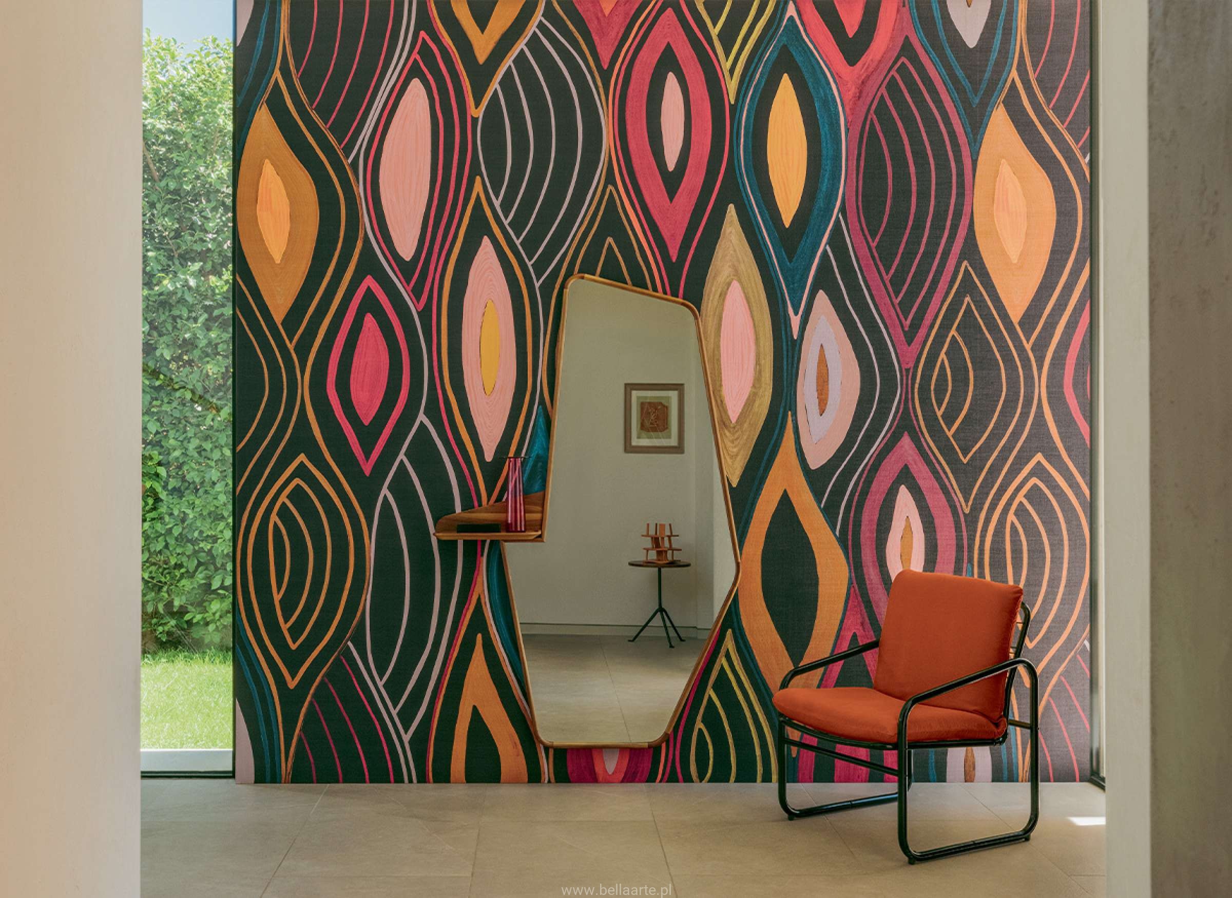 Zanurz się w świecie, gdzie kolory hipnotyzują, a zmysły gubią się w labiryncie ornamentów o płynnych, wijących się liniach. Mural w figury geometryczne inspirowany sztuką dekoracyjną i zmysłową formą prowadzi wzrok przez złożoną kompozycję o niemal medytacyjnym charakterze. To propozycja dla miłośników wzorów, które łączą precyzję z lekkością – gdzie geometryczne formy spotykają się z ruchem, tworząc efekt głębi i dynamiki.