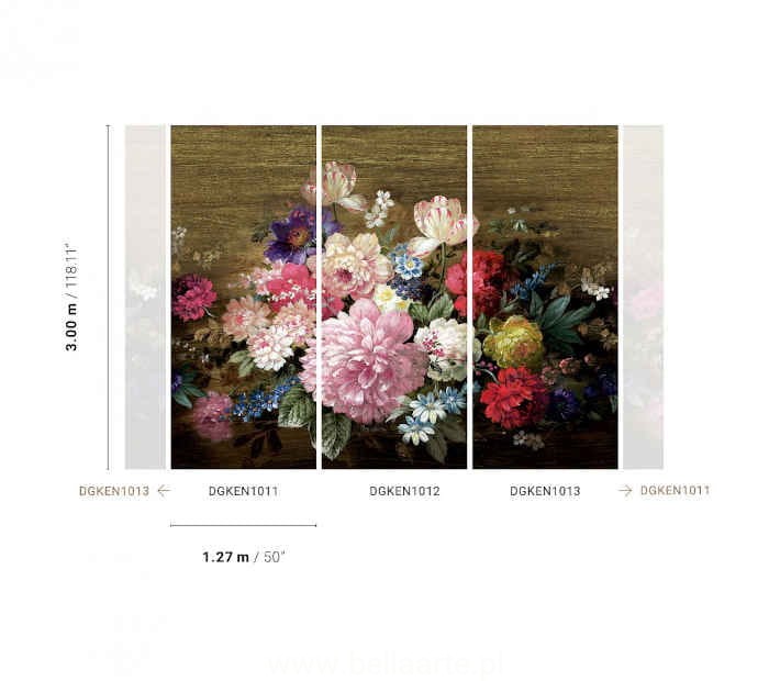 Mural Haley Claret to ogromne kwiaty w roli głównej. Spełni się jako główna dekoracja w salonie zamiast obrazu. Mural składa się z trzech części, które można ze sobą połączyć lub ułożyć na ścianie pojedynczo.