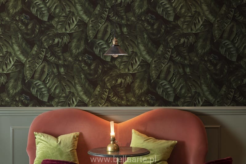 Celem tej tapety była podróż w myślach, która pulsuje bujną roślinnością, fascynującymi żabami i bujnymi liśćmi. Ręcznie malowany wzór nada przedpokojowi lub pokojowi dziecięcemu poczucia przygody i ożywi twoje ściany.