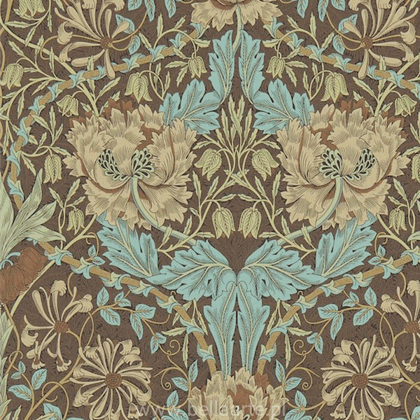Wzór tapety ściennej o nazwie Honeysuckle and Tulip zaprojektowanej przez Williama Morrisa w 1876 roku, cała kolekcja Archive Wallpapers III to zbiór tapet ściennych inspirowanych historią od 1870 roku do pierwszej wojny światowej, gdzie oprócz samego Williama Morrisa możemy obejrzeć wzory mniej znanych projektantów z tamtej epoki.