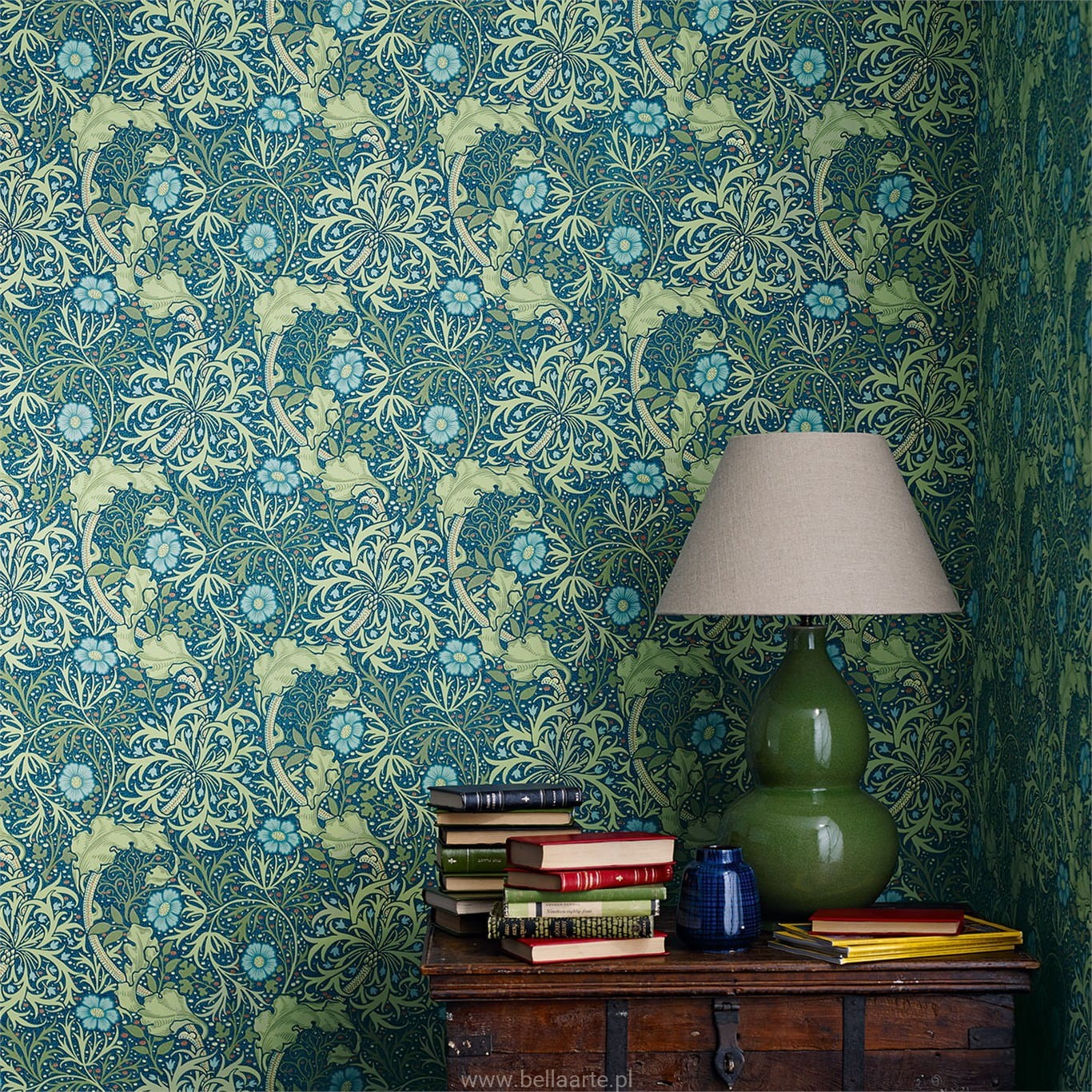 Wzór tapety ściennej o nazwie Morris Seaweed zaprojektowanej przez J.H.Dearle w 1901 roku, cała kolekcja Archive Wallpapers III to zbiór tapet ściennych inspirowanych historią od 1870 roku do pierwszej wojny światowej, gdzie oprócz samego Williama Morrisa możemy obejrzeć wzory mniej znanych projektantów z tamtej epoki.