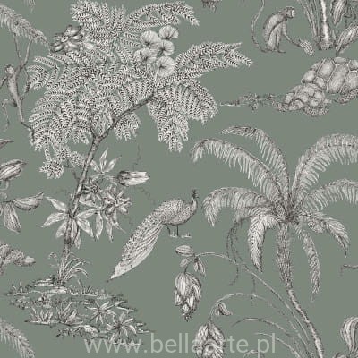 Ten rodzaj wzoru, jest najczęściej spotykany w klasycznych domach. Ale równie pięknie pasuje do pokoju dziecięcego lub salonu w nowoczesnym domu. Egzotycznym małpom kołyszącym się między palmami towarzyszą żółwie, pawie i piękne kwiaty. Wspaniały wyimaginowany świat, nazwany na cześć małego Moa, który wciąż był w łonie, kiedy jego matka rysowała wzór.