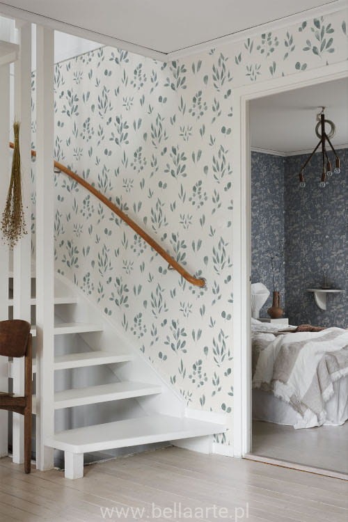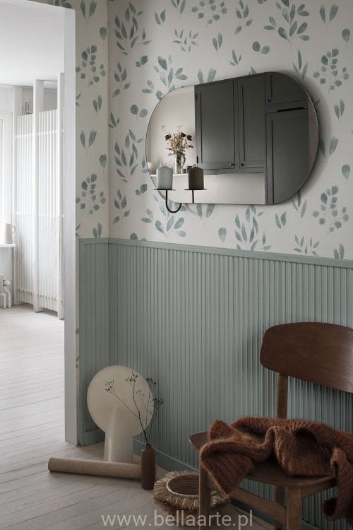 Umieszczenie projektu Belle na ścianie wypełnia pomieszczenie tlenem. Ręcznie malowana akwarela przywodzi na myśl naturę już po delikatnym deszczu. Wzór jest przejrzysty i nie dominuje; stanowi subtelne tło dla wszystkich pomieszczeń.