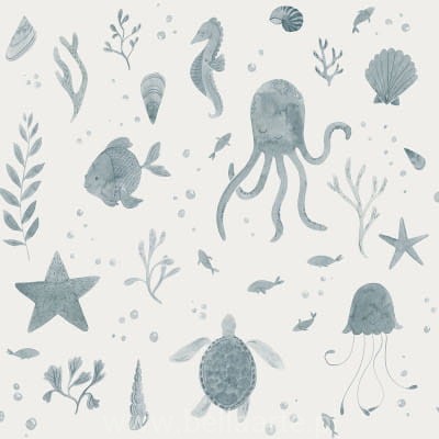 Urocze ośmiornice i wesołe meduzy. Żółwie, ryby i wszelkiego rodzaju muszle. Ubierz ściany w tę tapetę, a pokój zmieni się w najsłodszy świat pod falami.