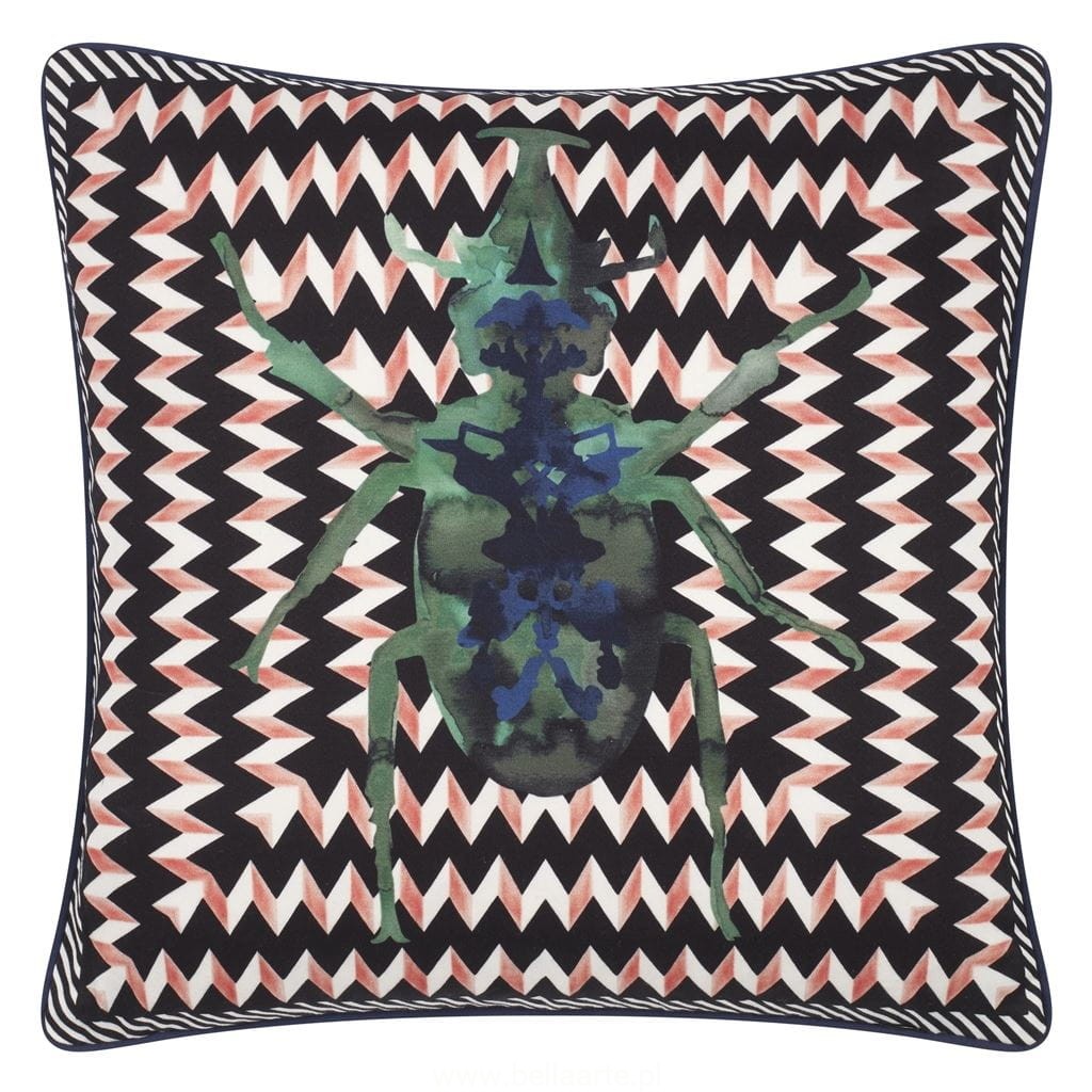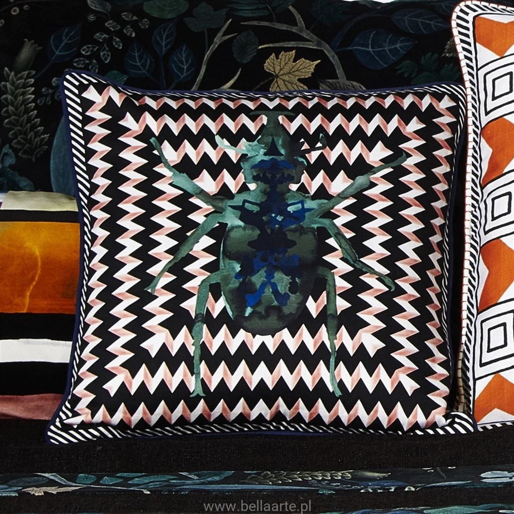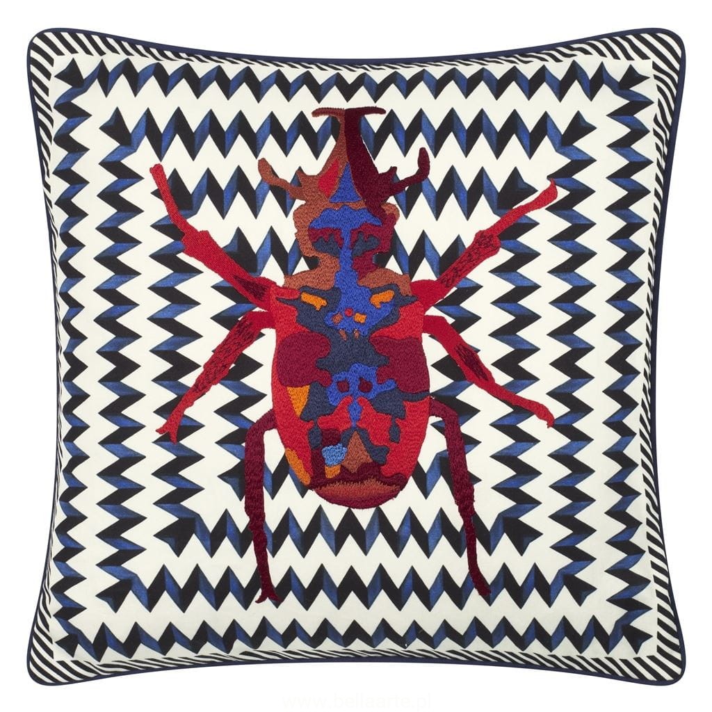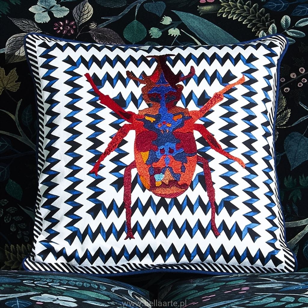 Olśniewająca poduszka dekoracyjna w geometryczny print autorstwa Christiana Lacroix z dużym żuczkiem zdobiącym obie strony. Cyfrowo drukowane
