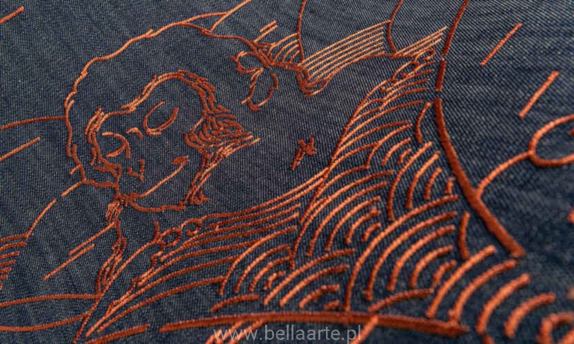 Tapety wykonane są z dżinsu, z kolorowym haftem. Wzór tapety przedstawia scenę rodzin Indigo Macaque kąpiących się w ich ulubionym miejscu: gorących źródłach u podnóża japońskich gór.