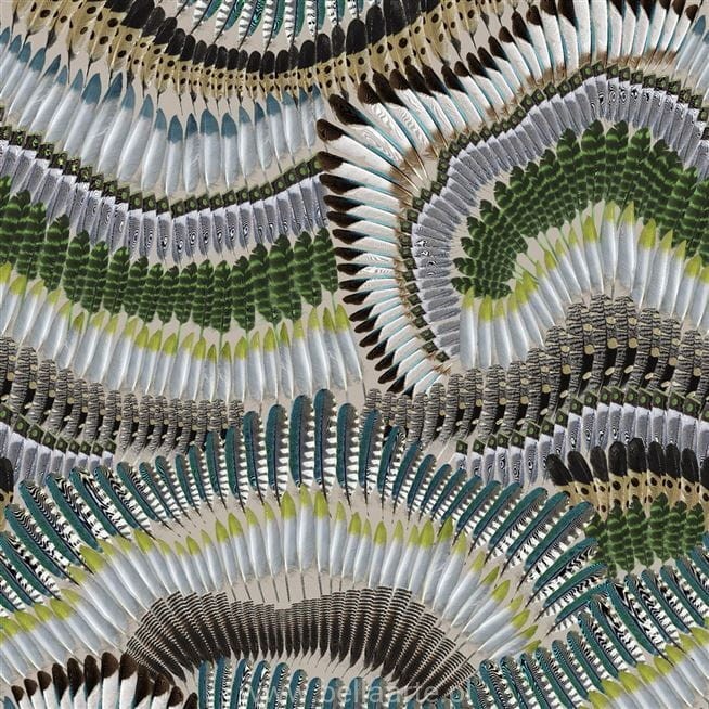 Panel tapety przedstawiający bardzo ozdobne ptasie pióra, ułożone w wirującą formację, tworząc hipnotyzujący wzór. Ten szczegółowy projekt tapety autorstwa Christiana Lacroix Maison jest dostępny w trzech wersjach kolorystycznych. Drukowany cyfrowo na gładkim podłożu z włókniny jako kompletny panel o szerokości 1,35m i wysokości 3m, każda rolka zawiera 3 bryty o szerokości 45 cm, które należy zawiesić w sekwencji.