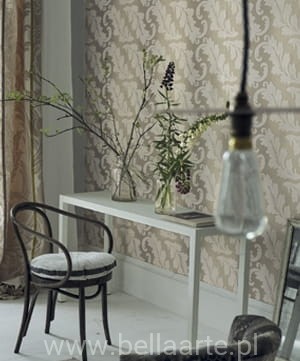 Wzór Ardassa z kolekcji Alexandria welurowa tapeta ścienna sprzedawana na rolki o wymiarach 10 m na 52 cm, piękne postarzałe wzory adamaszku, metaliczne efekty czy też żywe kolorystycznie kwiaty to charakteryzuje kolekcję Alexandria firmy Designers Guild.