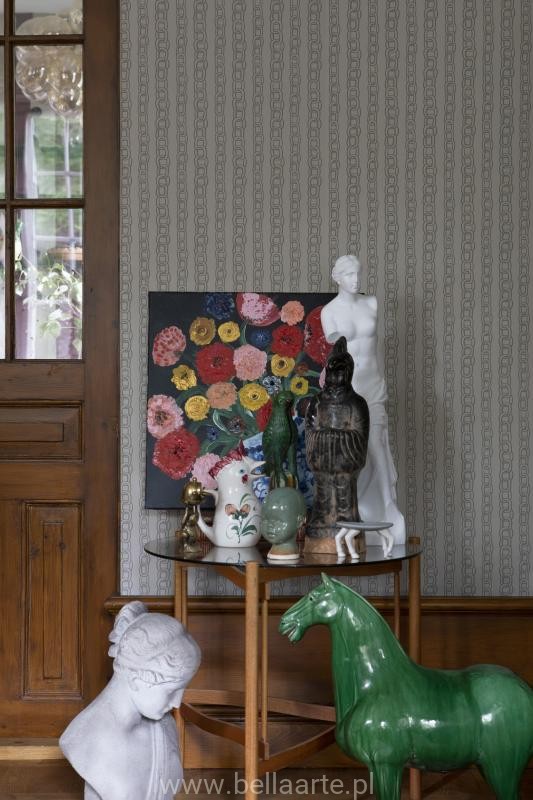 Katalog Studio Lisa Bengtsson, a w nim wzór Free przedstawia wyrafinowane wiszące łańcuchy, które rozciągają się w poprzek ściany wąskimi ścieżkami. Wyjątkowy wzór wprowadza do wnętrza dynamikę. Dzięki subtelnej kolorystyce wpasowuje się do każdego wnętrza.