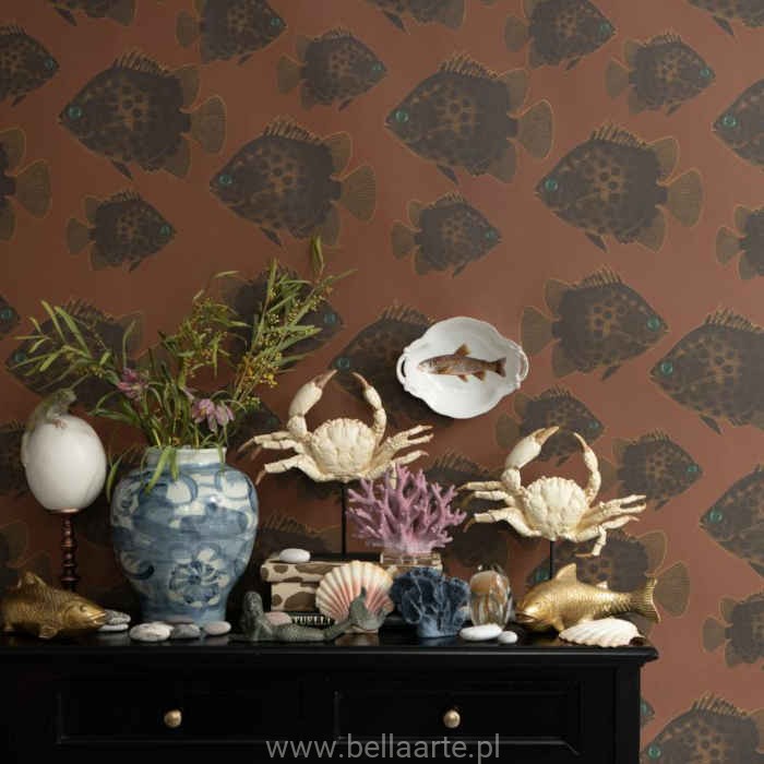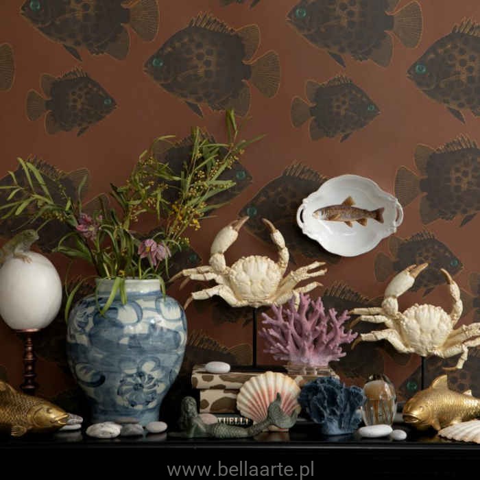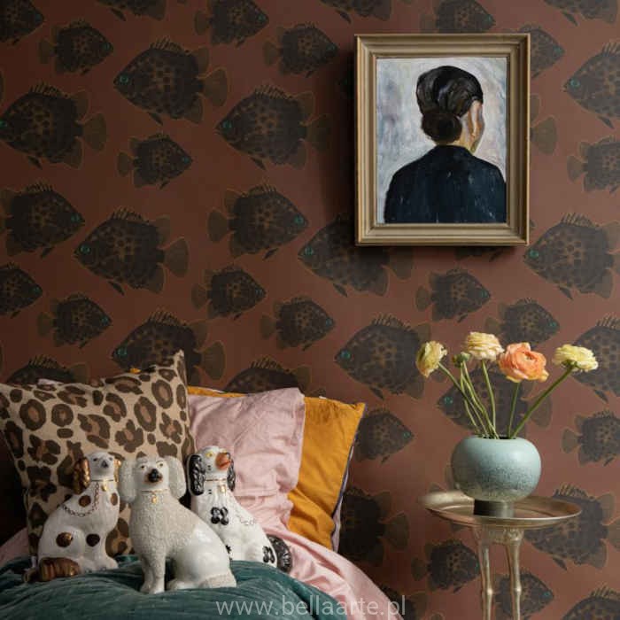 Katalog Studio Lisa Bengtsson, a w nim wzór Hakan w brązowej kolorystyce z motywem ryby.