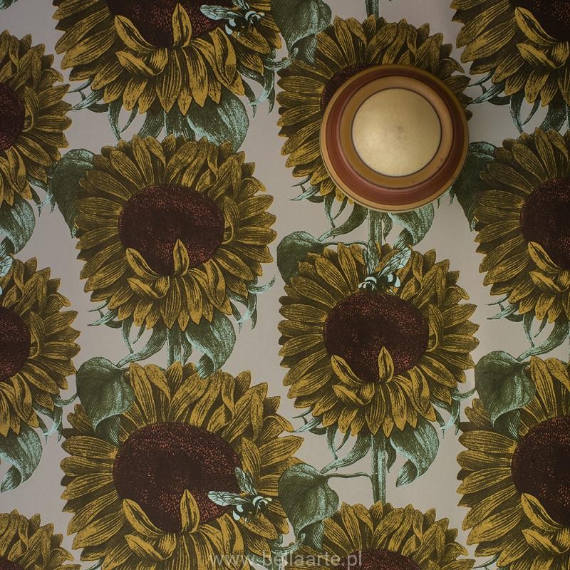 Katalog Studio Lisa Bengtsson, a w nim wzór Sunday to motyw beżowych słoneczników. Przepiękny, oryginalny, duży wzór kwiatowy.