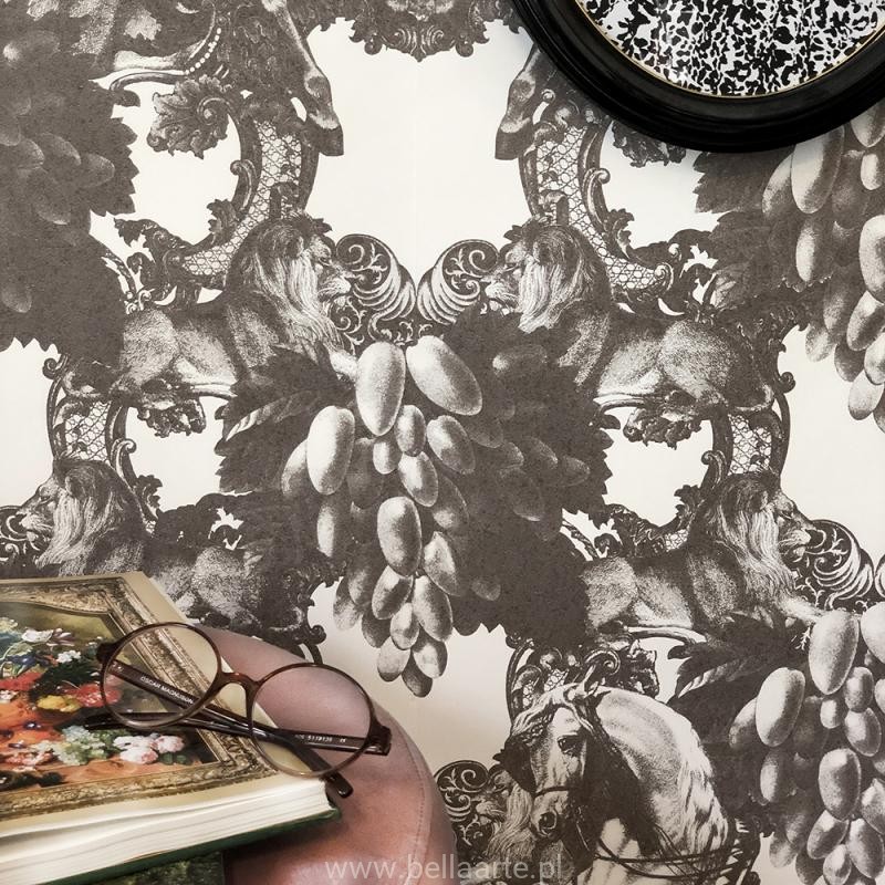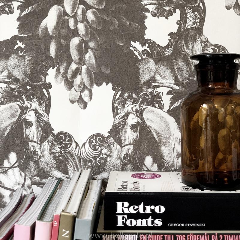 Katalog Studio Lisa Bengtsson, a w nim wzór Sir Grace tapeta z motywem koni. Sir Grace to jest coś wyjątkowego. Zainspirowany nowym rozdziałem w życiu, przeprowadzką, staruszkiem w niebieskim Volvo i erą narodowego romantyzmu. Projektantka stworzyła wzór, który nada twojemu domowi ciepło i luksus. "Wyobrażam sobie majestatyczną kobietę na koniu, gotową do bitwy. Lew daje jej siłę i moc, by kontynuować"