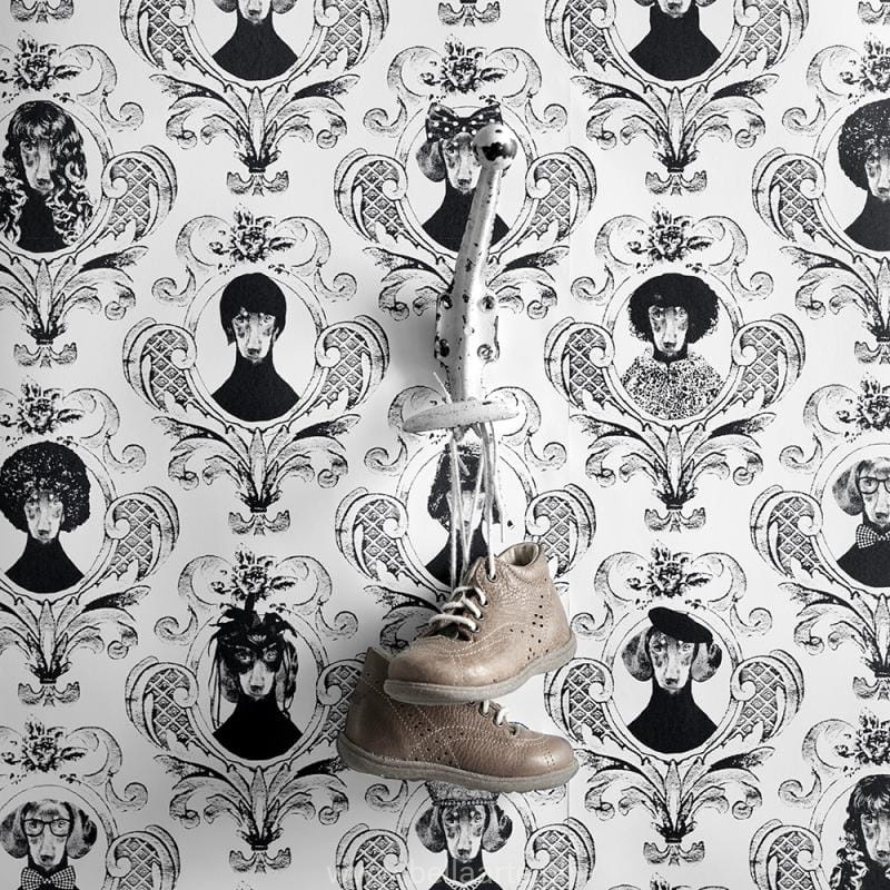 Katalog Studio Lisa Bengtsson, a w nim wzór Tillsammans to prosta tapeta z graficznie namalowanymi psami jako motywem. Zainspiruj innych i wyraź siebie.