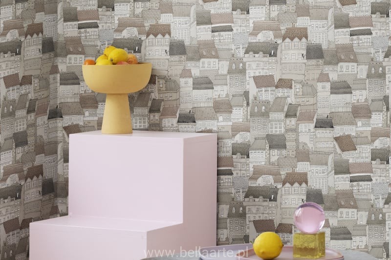 Tapeta w ręcznie rysowane domki wraz z wieloma zaskakującymi szczegółami.