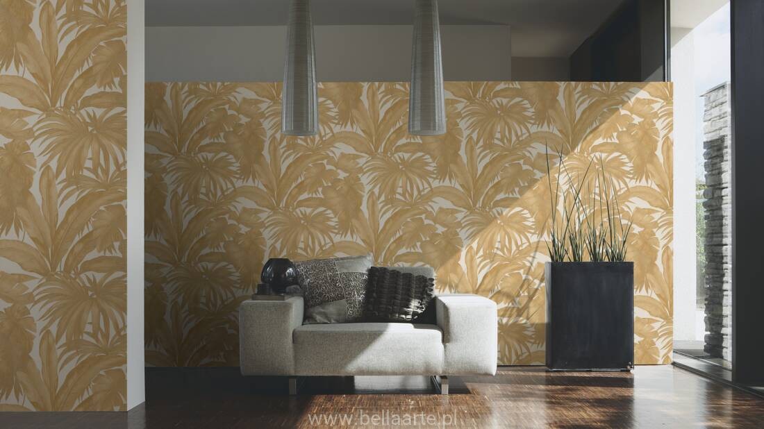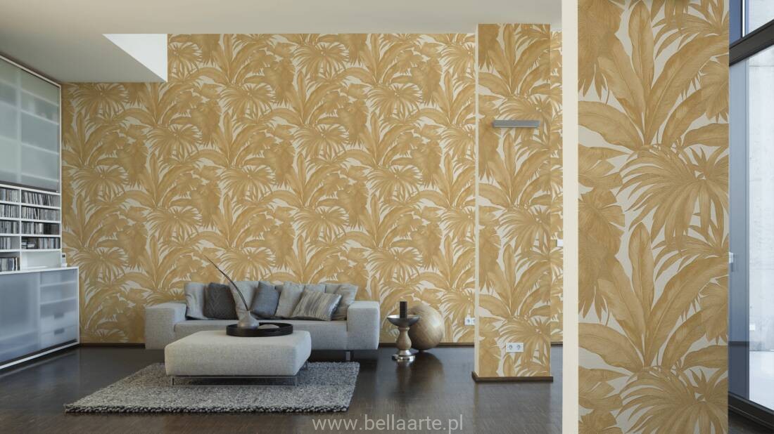 Wyjątkowa tapeta od Versace z atrakcyjnymi liśćmi bananowca oraz palmy zawsze elegancko prezentuje się na ścianie. Tapeta wykonana jest z wytrzymałego winylu,