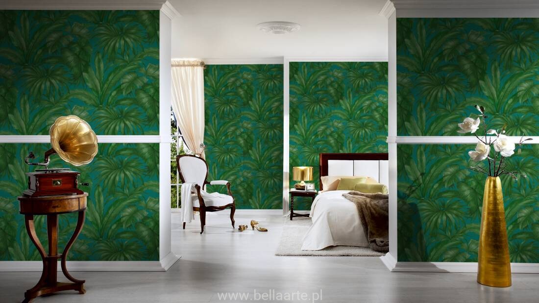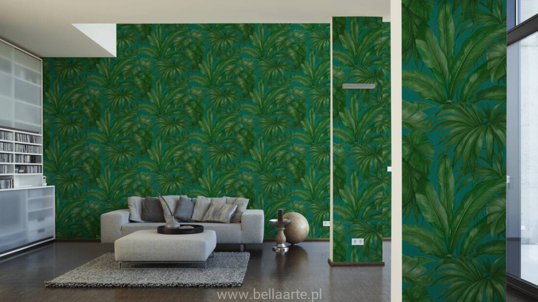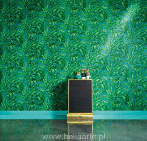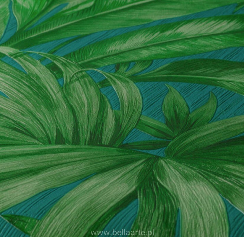 Wyjątkowa tapeta od Versace z atrakcyjnymi liśćmi bananowca oraz palmy zawsze elegancko prezentuje się na ścianie. Tapeta wykonana jest z wytrzymałego winylu,