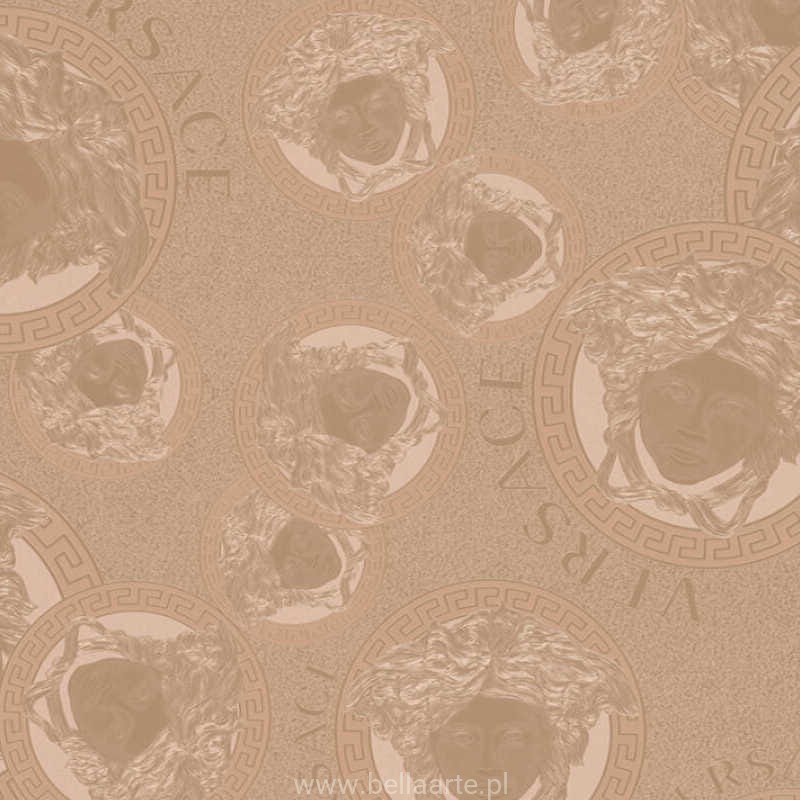 Wzór z głowami Meduzy jest jednocześnie logiem marki Versace. Tapeta jest również imitacją jedwabiu, jednakże jest to wysokiej klasy winyl.